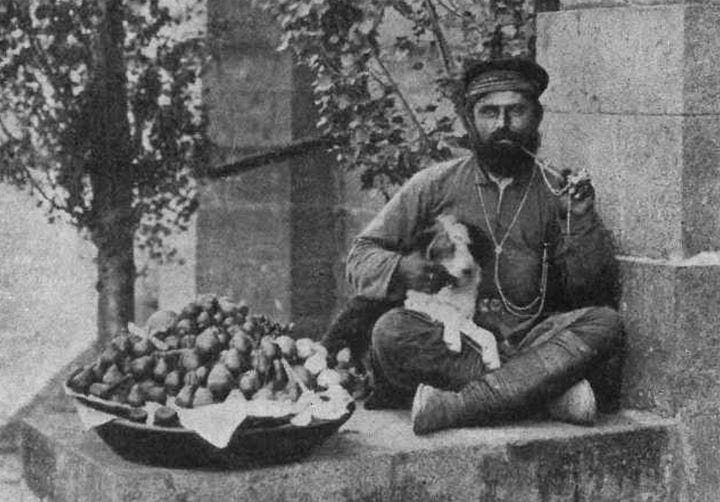 Among the recurring figures of Ortachala was the kinto: a small-scale street trader who moved through Tbilisi’s streets selling fruit and other goods from a tray or handcart. The figure emerged from Iranian urban traditions and appeared in Tbilisi during the period of Persian rule, taking on its familiar shape in the 19th century. Quick on his feet, verbally agile and socially marginal, the kinto belonged to the world of petty trade rather than to the city’s civic or craft traditions. Later folklore, especially in the Soviet period, often blurred this figure with the qarachoğeli, an older urban type of Georgian origin associated with honor and public standing [4].
